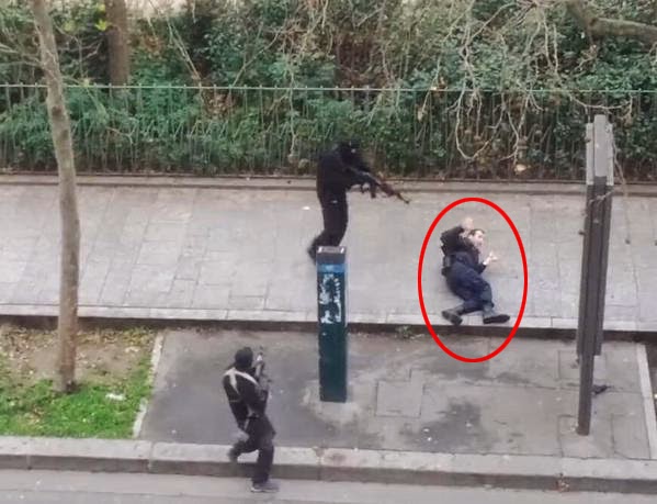 The hashtaggers dishonor him because Ahmed sacrificed his life for some fucking Communist shitlib cartoonists, who weren't prepared to defend their opinions or actions with force. He had to die on his back, hands in the air, so that anti-racist Communists could publish their lowbrow satire intended to entertain secular progressives and their anti-civilizationist, equalist dogma, and spit in Christendom's face. How ironic it is that the cartoonists were, quite literally, killed by equalism and multiculturalism. On top of that, more clearly than ever do we recognize the lie that borders are somehow magically able to change illiterate goat herders and tribal warriors into philosophers and good neighbors. The perpetrators were born in France, yet gladly traveled to Middle Eastern conflict zones to contact Islamist forces in those areas for training.